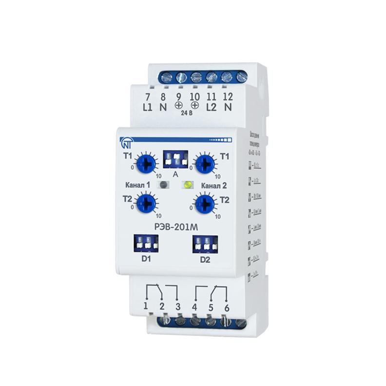 REV-201М | 6 | 2 | from 1 second to 20 hours | Potentiometers | No | Up to 6A | AC 230V-240V / DC 24V | Two LEDs | 36мм (2 Din) | up to 0.150 kg | |