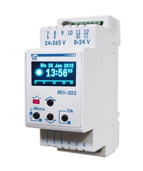 REV-303 | yes | yes | no | yes | 1 | Two control programmes | AC/DC 24-265 V | up 16А | 36мм (2 Din) | Display | 0,200 kg. | |