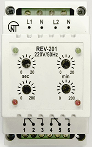 The REV-120 time relay is a microprocessor-based device designed to switch the load on and off at user-defined intervals.