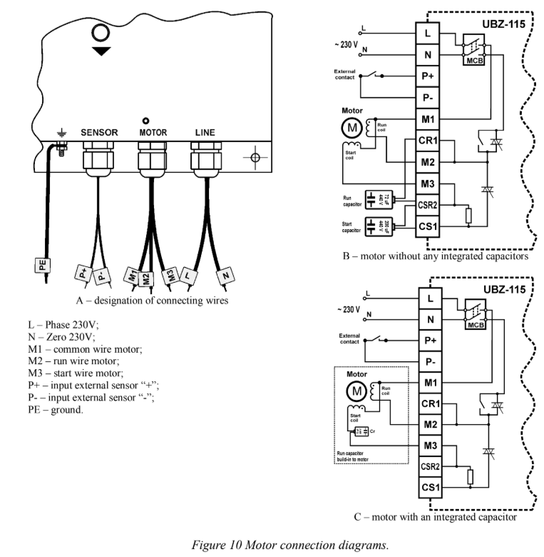 The UBZ-115 is designed to protect single-phase asynchronous electric motors with a capacity of up to 5.5 kW (25A).