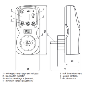 VC-115 voltage relay is designed to protect household appliances (equipment) with a power capacity of up to 3.5 kW (such as refrigerators, air conditioners, washing machines, TV and audio equipment, etc.) from unacceptable voltage fluctuations in the network and the effects of a neutral wire break.