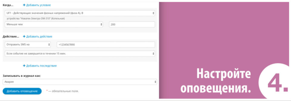 Set up custom events and alarms. Receive notifications by SMS, email.