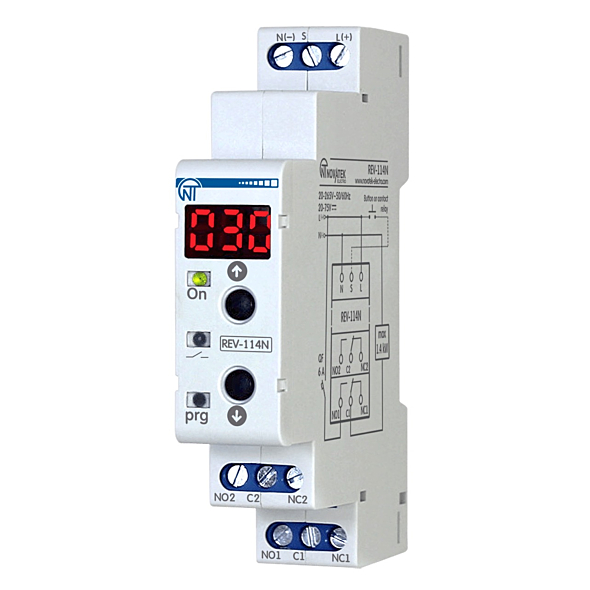 The REV-114N time relay is a microprocessor-based device designed to switch the load on and off at user-defined intervals.