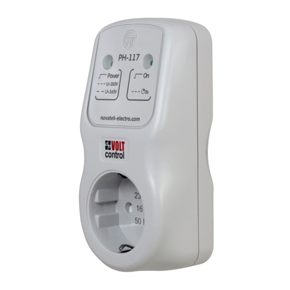 The РН-117 voltage relay is designed to protect household appliances with a power of up to 3.6 kW (such as refrigerators, air conditioners, washing machines, audio-video equipment, etc.) from unacceptable voltage fluctuations in the power network and the consequences of a neutral wire break.