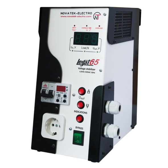 Jednofazowy stabilizator napięcia Legat-65 jest przeznaczony do zapewnienia wysokostabilnego zasilania elektrycznego różnorodnym odbiornikom 230 V / 50 Hz o mocy do 6500 VA.