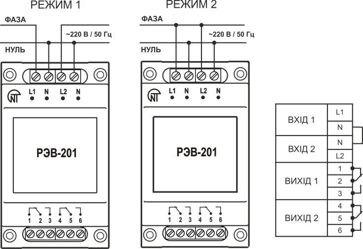 Реле часу електронне двоканальне із затримкою на включення REV-201 призначено для комутації електричних ланцюгів змінного струму 220 В / 50 Гц і постійного струму 24-100 В з регульованою затримкою часу включення від 0 до 220 с.