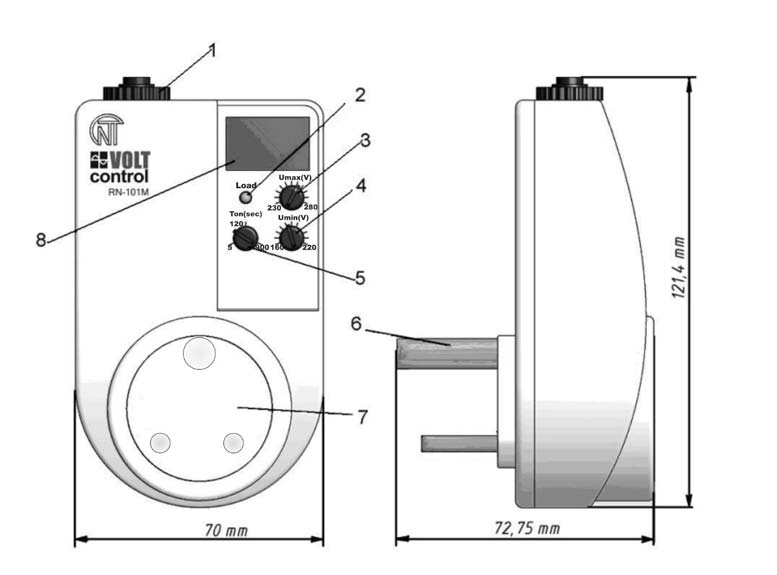 Реле напруги VC-115 ”Volt Control” (VC-115 - світлий корпус, VC-115T – корпус темного коліру; в подальшому - VC-115) призначене для захисту побутової техніки (обладнання) потужністю до 3,5 кВт (холодильників, кондиціонерів, пральних машин, теле-аудіо техніки і т .ін.) від недопустимих коливань напруги в