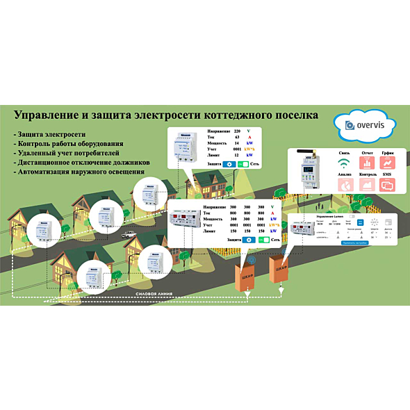 Управління та захист електромережі котеджного селища Overvis Village