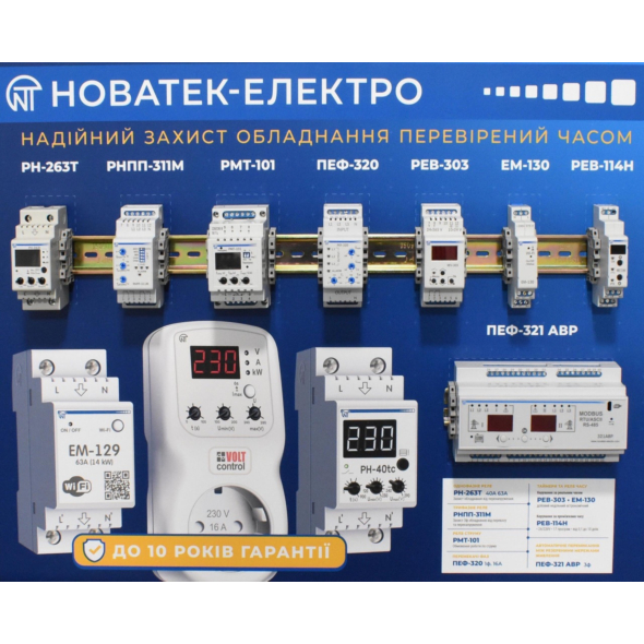 Розробка і виробництво пристроїв захисту і автоматики. Гарантія 5 років. Продукція постійно в наявності на складі або виробляється в найкоротші терміни.